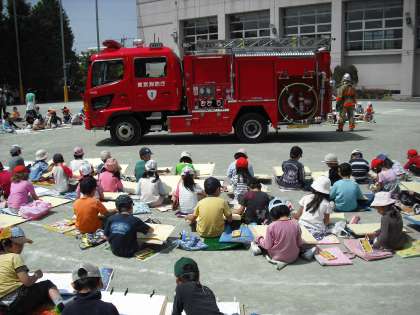 暑くて大変でしたが、みんな消防車を上手に描くことができたかな?