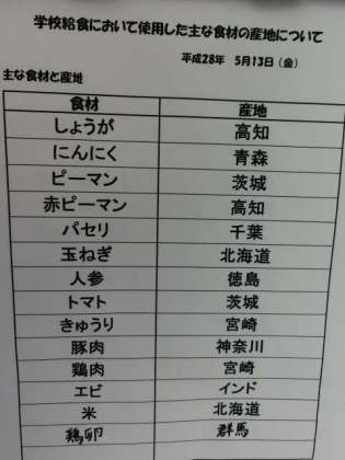 5月13日(金) 給食食材産地