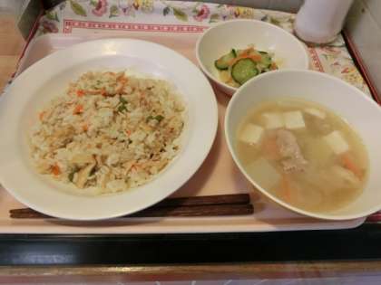 今日の給食「こぎつねごはん・呉汁・即席漬・牛乳」