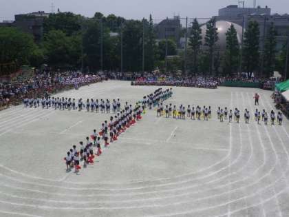 2年生による演技です。隊形移動が難しい演技です。当日は笑顔でそして元気に演じることができました。