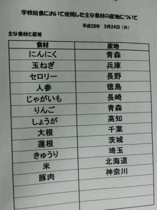 5月24日(火) 給食食材産地
