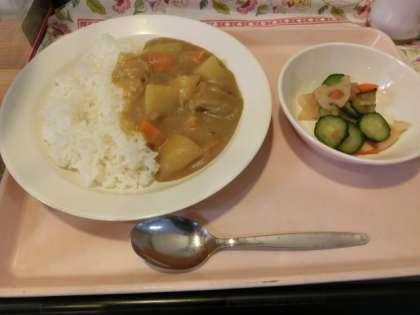 今日の給食「カレーライス・シャキシャキ野菜・牛乳」