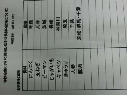 6月7日(火) 給食食材産地