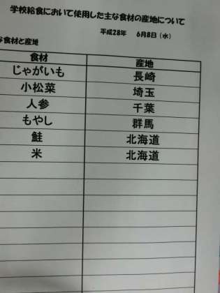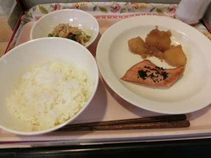 今日の給食「ごはん・魚の南部焼き・じゃがいものあまからに・あぶらあげのおひたし・牛乳」