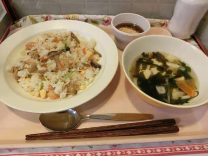 給食では今年の米がおいしく育ちますように、と願いを込めてちらし寿司を作りました。