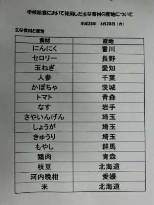 6月28日(火) 給食食材産地