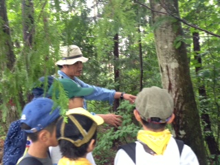 頂上につきました。途中、クマがキズをつけた木の幹をガイドの方に見せていただきました。クマよけの鈴をもってハイキングに行くのですが、自分たちが、山の中にお邪魔するという気持ちを持つことが大切だそうです。