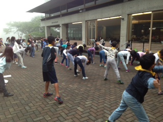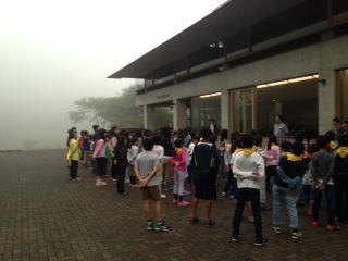 3日目の朝を迎えました。霧雨の中ですが、みんな元気に過ごしています。朝の体操で目を覚まし、今日もグループで協力して、楽しく過ごせるようにしたいと思っています。