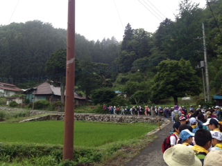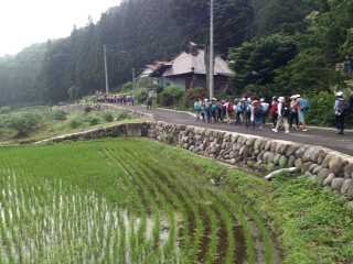 川場村を見学しています。畑、田んぼ、果樹園、実際に見ることができました。