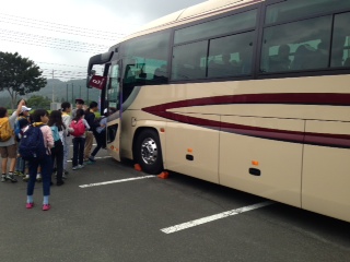 昼食が終わり集合し、バスに乗りました。これから東京に向かいます。三芳SAを出発したら、緊急連絡メールでお知らせします。みんな元気です。