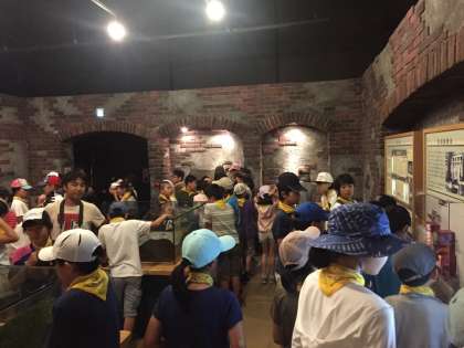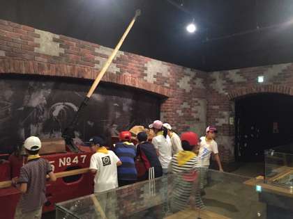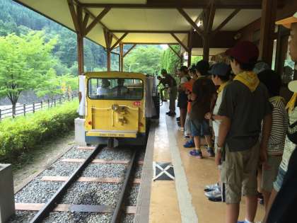 足尾銅山に到着しました。「足尾銅山跡」として国の史跡に指定されています。トロッコ電車に乗って全長700mの薄暗い行動に入っていくと、当時のつらく厳しい鉱石採掘の様子が再現されていました。