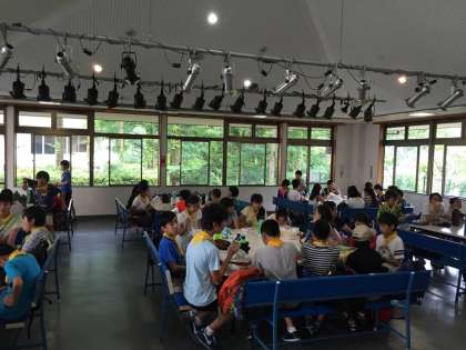 昼食の時間です。朝早く準備していただいたお弁当を、感謝の気持ちをもっていただきました。この後バスに乗って輪王寺に向かいます。