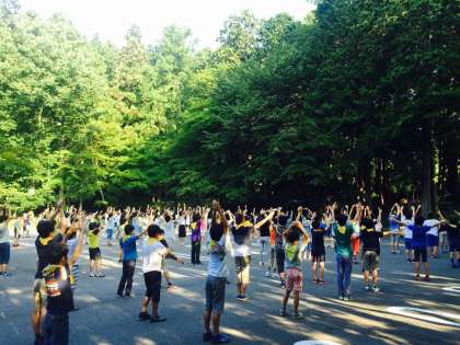 3日目の朝を迎えました。子ども達はみんな元気です。今日も天候に恵まれ、とてもすがすがしい朝を迎えました。体操をして目を覚まします。