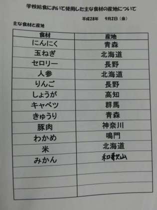 9月2日(金) 給食食材産地