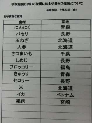 子どもたちはよく食べていました。トウガラシはなるべく低学年の方にいかないように配りょしたのですが、中には入ってしまったものもあったようです。「からい!」といっている子どもに、ごめんねと声をかけ、3つの食材の話をすると、「じゃあ仕方がないね」といってくれました。
