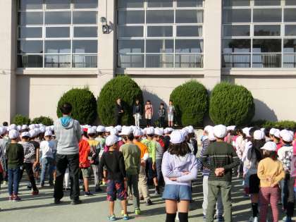 10月31日(月)の朝会では、6年生から連合運動会についての感想発表会がありました。
