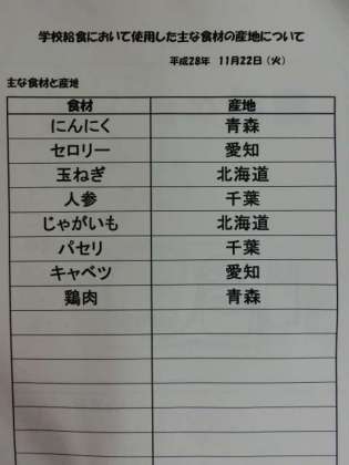 11月22日(火) 給食食材産地