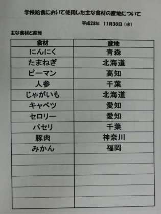 11月30日(水) 給食食材産地