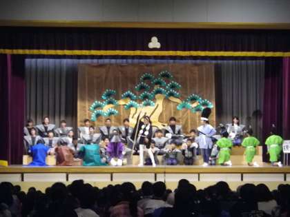 古くから伝わる舞台芸術の中から、能、狂言、歌舞伎、人形浄瑠璃についていろいろな方法で紹介することができました。狂言と歌舞伎は、演目の一部分を切り取り、現代の言葉と当時の言葉両方で演じました。長い間大切に受け継がれてきた「日本の心」とはどういうものかを、学習を通して考えてきました。発表を見ている大人も、受け継がれてきた「日本の心」について考えさせられる素晴らしい発表でした。