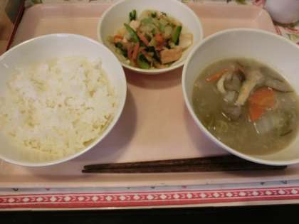 今日の給食「ごはん・鰺のつみれじる・生あげのにびたし・牛乳」