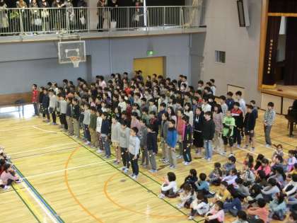 6年生の発表は合奏「メヌエット」、合唱「明日という日が」の発表でした。「メヌエット」では、たがいのパートを聞き合いリコーダーを演奏しました。「明日という日が」では、構成を意識してクライマックスへ向かって音量を工夫しました。
