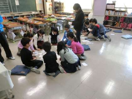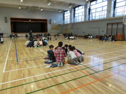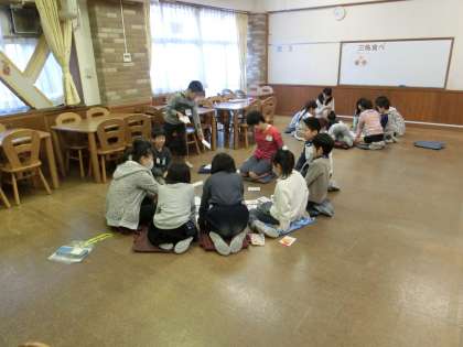 1月14日(土)、たてわりかるた会が行われました。いつもは外で遊ぶたてわりですが、この日は室内で、かるたをします。かるたは以前企画・代表委員の児童が作った物を引き継いでいます。どのグループもとても盛り上がっていました。児童の反応の速さには驚かされます。