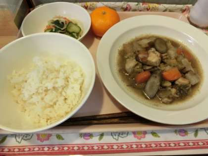 今日の給食「雑穀ごはん・サバの煮食い・切り干し大根のあえ物・青島みかん・牛乳」