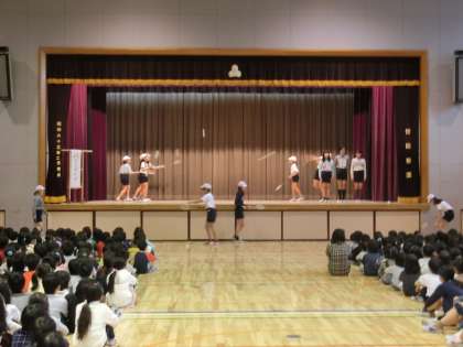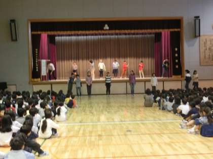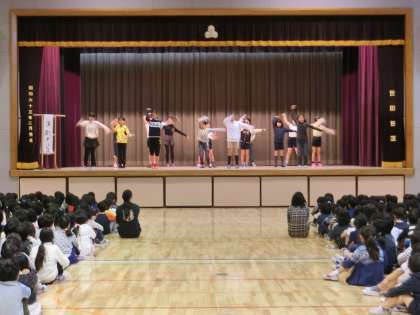 今回の発表クラブは、ミニサッカー、屋外、バドミントン、実験、演劇ダンス、ジャグリングでした。今回は1回目よりも体を動かすクラブの発表が多くありました。1回目の発表の様子を見て、よりひきつける工夫をこらした発表が多くありました。