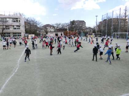 企画・代表委員会で、学校でのきまりでは、1日1回は外で遊ぶと決まっているのに遊んでいる人たちが少ないということが課題として出ました。そこで3月13日(月)〜3月17日(金)までを、「外で遊ぼう週間」としました。