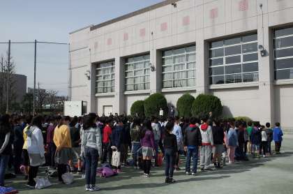 新たな気持ちで2年生から6年生から集まり、始業式が始まりました。