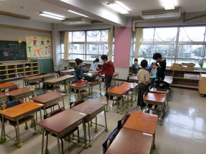 4月7日(金)から毎日、6年生は1年生のお手伝いをしています。靴をそろえて靴箱に入れる。教室に行き、お道具箱にランドセルの中のものをきれいに入れる。など、たくさんの仕事があります。目線を1年生に合わせて優しく話しかけている姿から、6年生の成長を感じます。これからも縦割り班活動など様々な場面で交流があります。