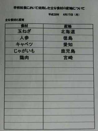 4月17日(月)給食食材産地