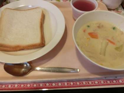 今日の給食「ジャムバターサンド・クリームスープ・ぶどうゼリー・牛乳」