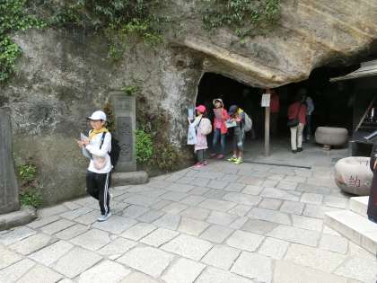 午後の一つ目の目的地は銭洗弁財天です。10円をざるに入れ水をかけ、増えろ増えろと念じていました。