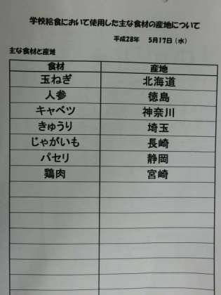 5月17日(水) 給食食材産地