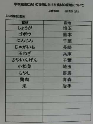 6月5日(月) 給食食材産地