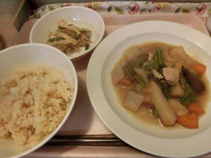今日の給食「雑穀おこわ・筑前に・カリカリあぶらあげおひたし・牛乳」