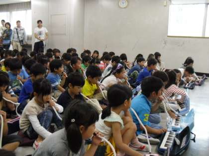 6月13日(木)に、1年生は鈴木楽器製作所の坂元一孝先生をお迎えして、メロディオンの講習会を行いました。息の吹き方や指使いなど、楽しくわかりやすく教えていただきました。これからの音楽の授業がより一層楽しみになりました。