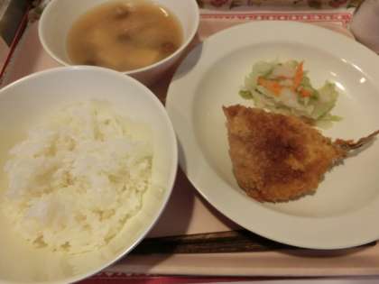 今日の給食「ごはん・アジフライ・キャベツサラダ・ナメコのみそしる・牛乳」
