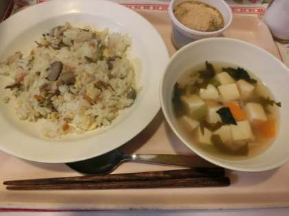 今日の給食「たこちらし・すましじる・黒みつ寒天・牛乳」