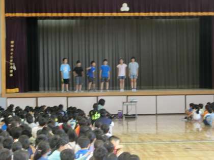 今日は、朝の時間に委員会発表集会がありました。今日は飼育委員会と保健委員会の発表がありました。飼育委員会では、より学校にいるウサギ「オセロ」と「ブラン」について知ってもらうため、様々な取り組みをしていることを紹介していました。毎日お世話しているので、愛情をもって接しています。保健委員会は、劇を通して、学校全体に健康に過ごすことの大切さを伝えました。途中でクイズを交えながら、楽しく学ぶことができました。