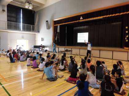 今日は、4年生が社会の勉強の一つとして「水道キャラバン」による学習を行いました。水道キャラバンは、子供たちに水道水に対する理解や関心を高めていただくための出前授業のひとつとして行っています。濾過の実験を通して、浄水の仕組みを理解したり、劇を通じて東京都の水道について学習しました。普段の生活の中でも、経験したことが生かせるといいですね。
