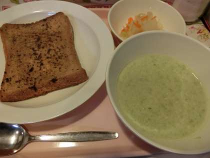 今日の給食「紅茶のフレンチトースト・ウミガメスープ・ハニーマスタードサラダ・牛乳」