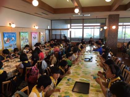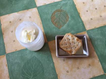 容器に入った生クリームをひたすら振って出来上がり。完成した後はクラッカーに乗せて、おいしく食べました!