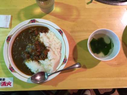 日光林間学園最後の食事はカレーライスとわかめスープです。