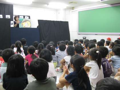 1年生は、教科「日本語」の授業の一貫として、民話の会の方々をお迎えし、世田谷区の民話を読み聞かせしていただきました。小さな劇のような楽しい読み聞かせに子どもたちは食い入るように聞いていました。また、ねこ仙人の声では副校長先生が登場し、大盛り上がりでした。
