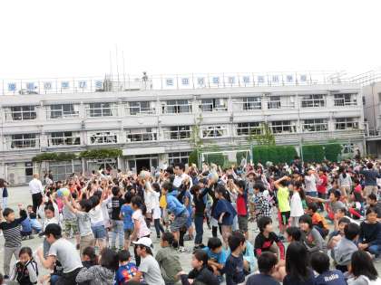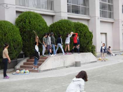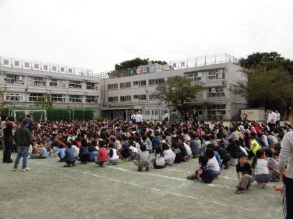 今日は、朝の時間に全校でクラス対抗児童集会がありました。今回は、クラス全員の力で、協力して取り組む競技をし楽しみました。手つなぎリレーやフラフープくぐり、ボール回しなど、様々な競技でした。各クラス声を掛け合い、クラス一丸となって取り組んでいました。
