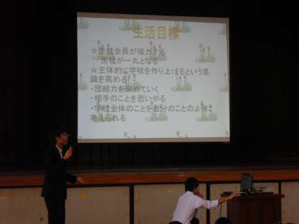 パソコンを使って分かりやすく中学校の生活や様子を話してくれました。