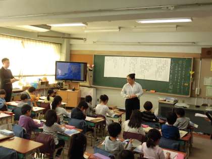 今日は、5時間目に1年3組で日本語の研究授業がありました。今回は、世田谷区の先生方が参観にきました。1年生も元気な声で音読をし、日本語の響きの良さを感じながら学習をすすめていました。1年生も入学した当時より一段と成長し、集中して学んでいました。