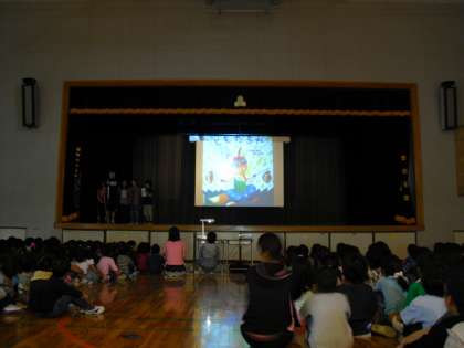 「ともだちや」という絵本を映し、委員会の子どもたちがそれぞれの役になって